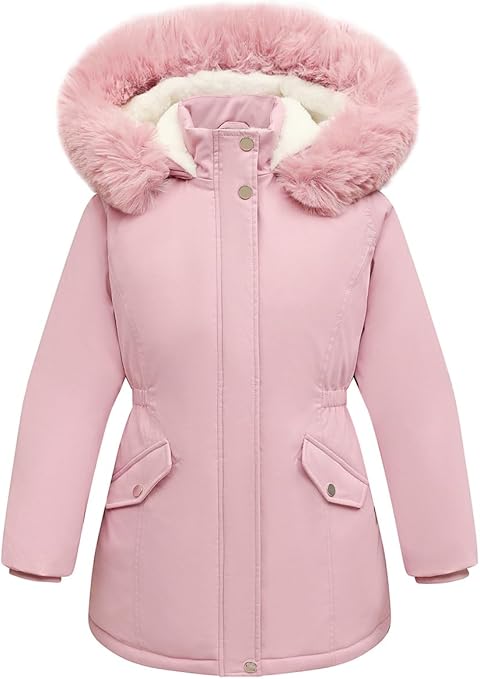 CREATMO US Girl’s Long Winter Warm Parka Sherpa Trimmed Collar Puffer Ski Jacket